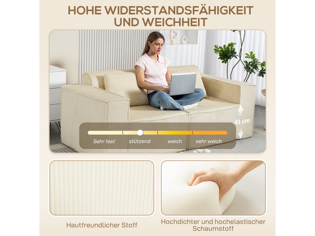 Hluboký a pohodlný sedák: Zažijte prvotřídní pohodlí s extra hlubokým 65 cm sedákem a silným polstrováním (hloubka sedáku 41 cm, výška opěradla 23 cm), zatímco vysoce hustá a vysoce pružná pěna a dva polštáře poskytují optimální oporu pro relaxaci.