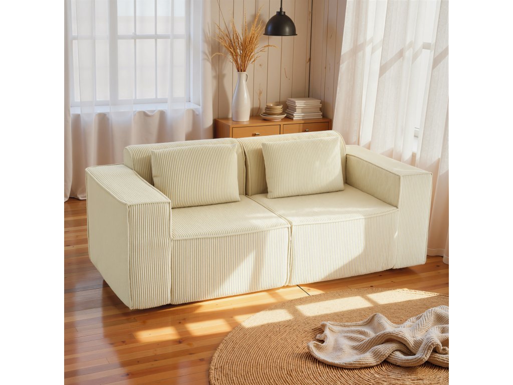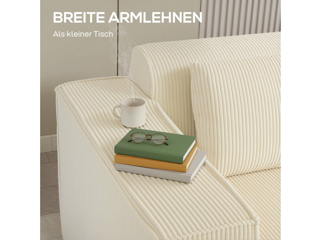 Elegantní a měkká: Tato 3místná pohovka je čalouněna prodyšnou, k pokožce šetrnou a oděruvzdornou manšestrovou látkou s jedinečnou texturou. Spojuje pohodlí s moderním stylem, díky čemuž je výrazným doplňkem vašeho obývacího pokoje.