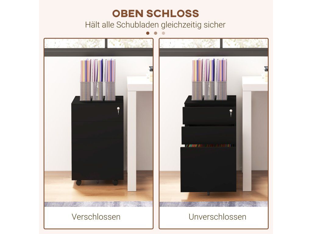 Pojízdná skříň na podstavci Vinsetto, 3 zásuvky, uzamykatelná, na kolečkách, 37 cm x 43,5 cm x 60 cm, černá barva