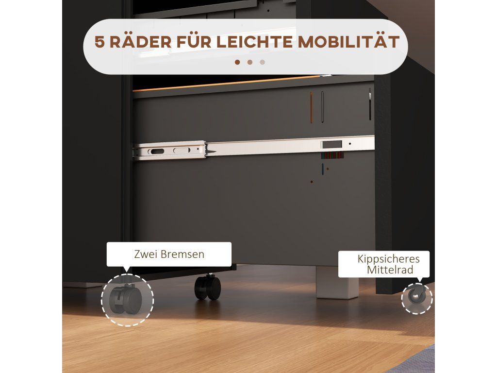 - Vždy po ruce: Tato kartotéka s kolečky nabízí mobilitu, takže ji můžete mít při práci pohodlně po ruce a po skončení práce ji odsunout do rohu. Díky dvěma brzdám zůstane pevně na místě, kde ji potřebujete. Středové kolečko slouží jako bezpečnostní mechanismus, který zabraňuje jeho převrácení