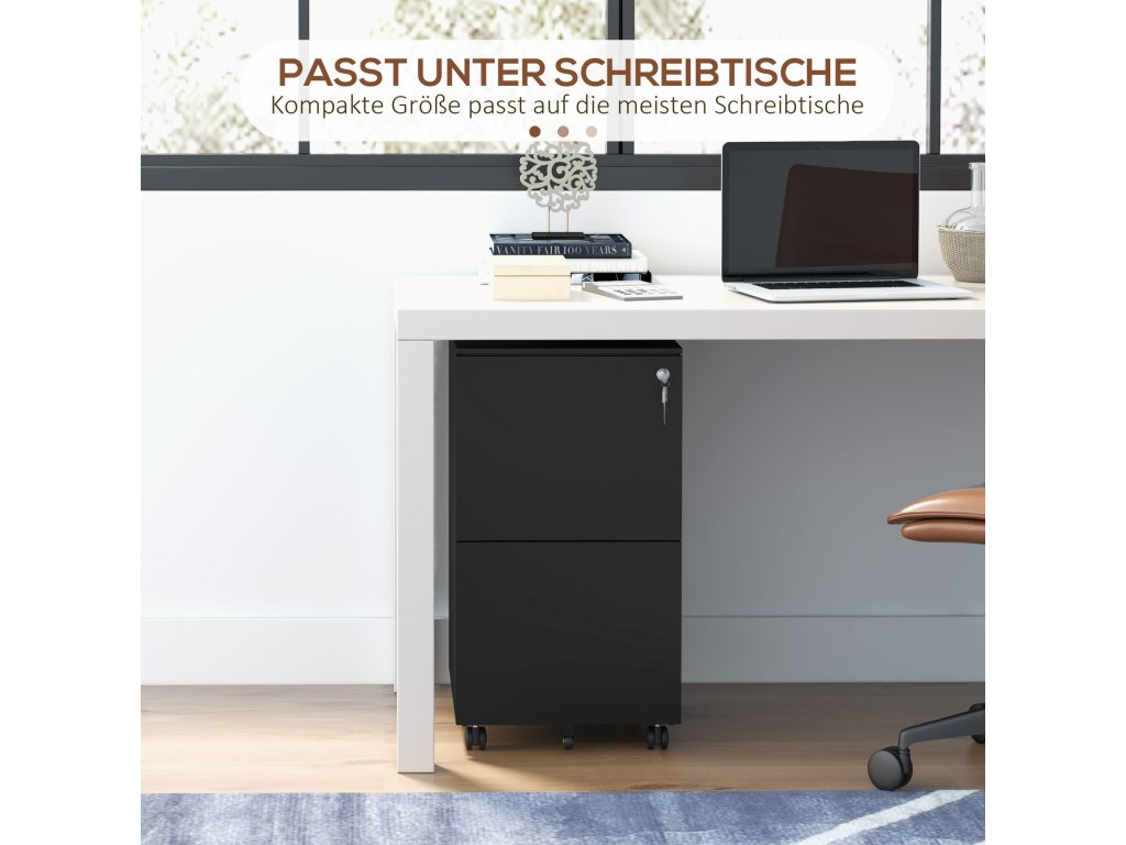 Už žádné přehazování důležitých dokumentů a chaos na stole! Dvouzásuvková kartotéka Vinsetto je vaším spolehlivým partnerem pro efektivní pracovní den. S touto skříní budete mít vždy vše po ruce a vždy budete vědět, kde se vaše dokumenty nacházejí. Věnujte více času produktivitě a méně času hledání v papírech. S mobilním kancelářským kontejnerem od společnosti Vinsetto budete vždy dokonale organizovaní a připravení k akci.