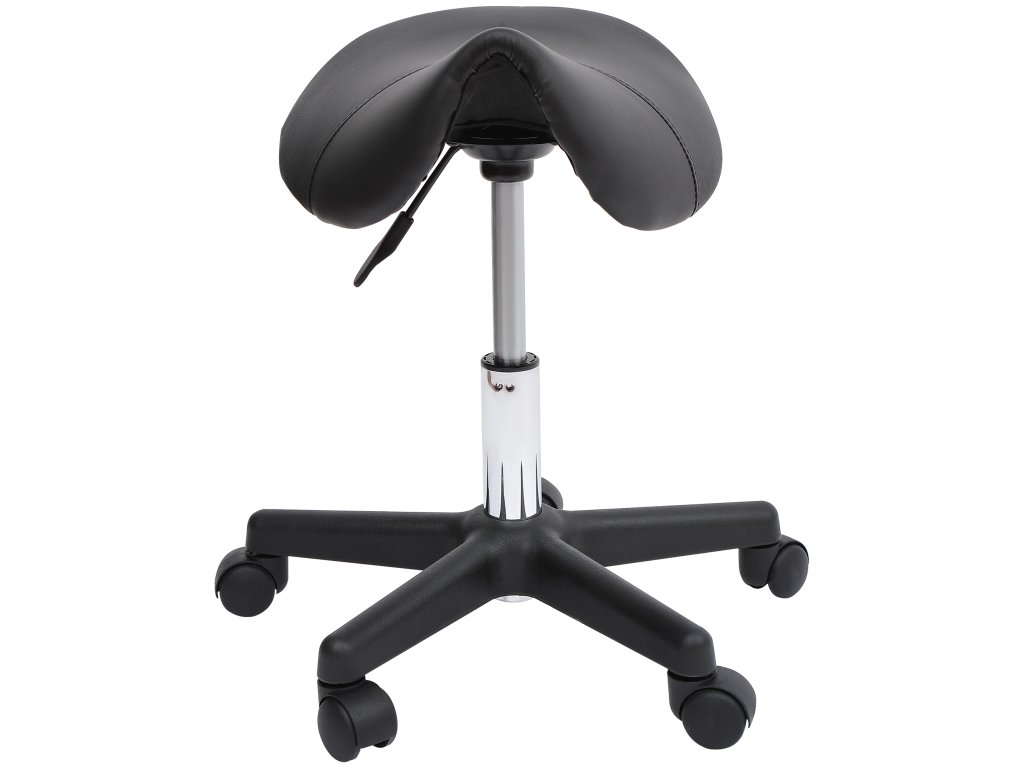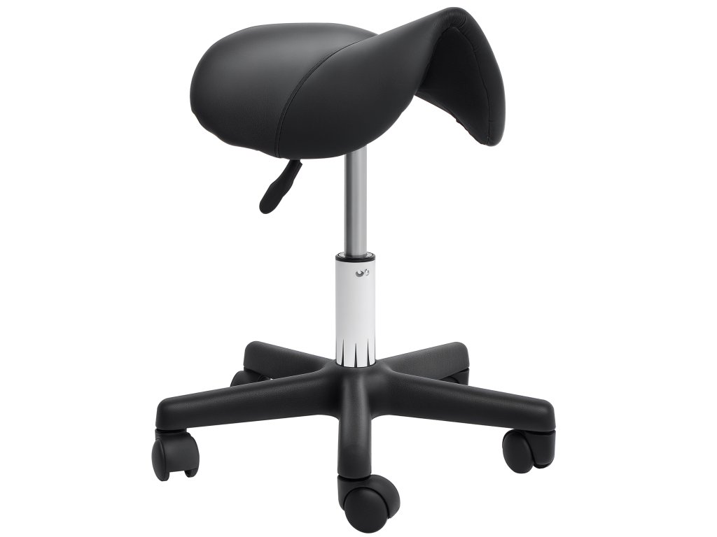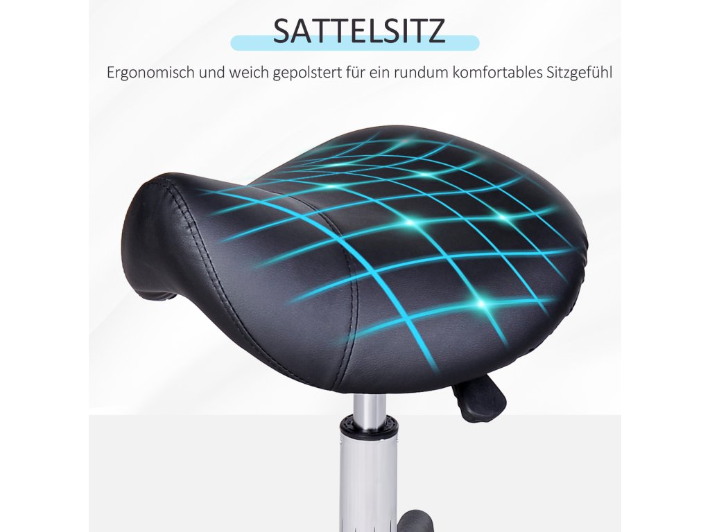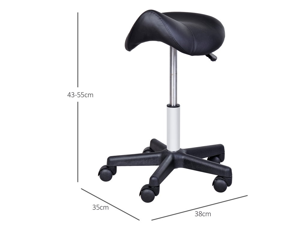 Pojízdná stolička HOMCOM, sedlo ve tvaru sedla, výškově nastavitelná, otočná o 360°, umělá kůže, černá, 35 x 38 x 45-55 cm
