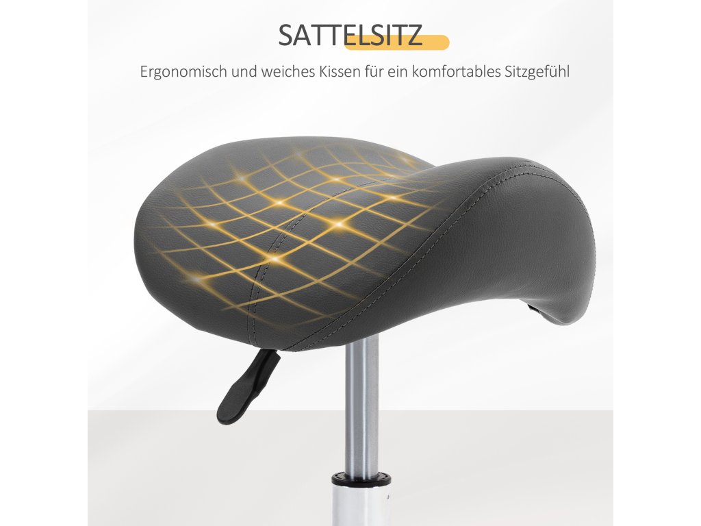 Ergonomický a pohodlný: Sedlovitý, ergonomický sedák ze syntetické kůže poskytuje optimální oporu nohou a páteři, snižuje tlak na klouby a svaly a je obzvláště vhodný pro činnosti, které vyžadují delší sezení.