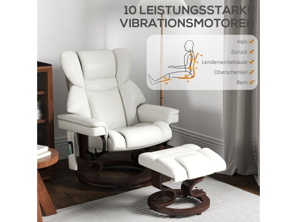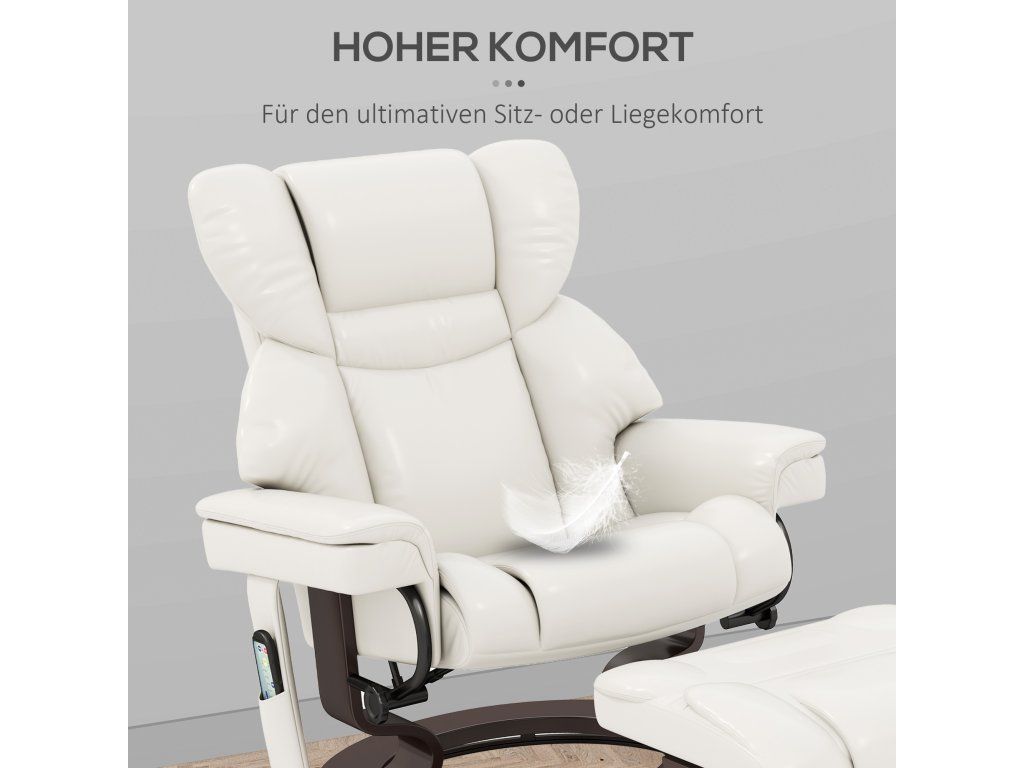 Polohovací křeslo HOMCOM s masážní funkcí a podnožkou, umělá kůže, 79 x 82 x 101 cm, krémově bílá