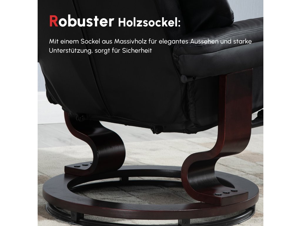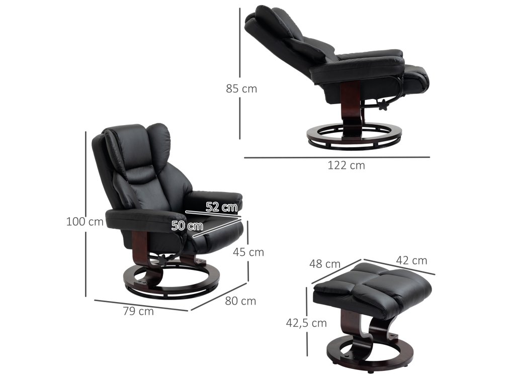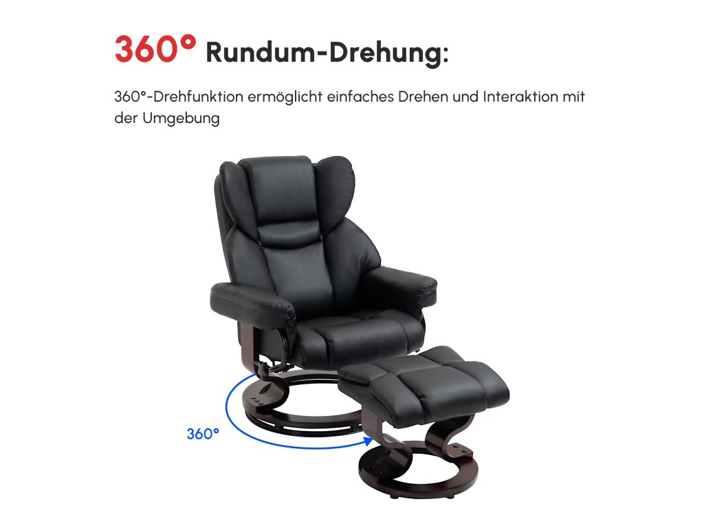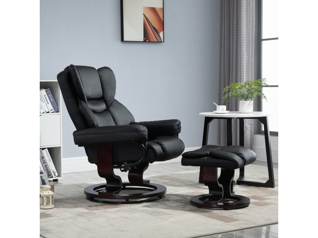 Polohovací křeslo HOMCOM s podnožkou, funkce polohování, otočné, nosnost až 160 kg, umělá kůže, kovový rám, černé, 80 x 79 x 100 cm