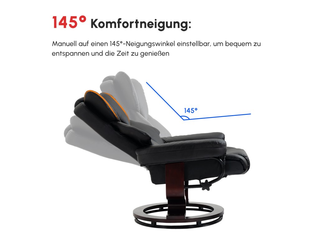 Pohodlná sada skládající se z polohovacího křesla a stoličky: Polohovací křeslo lze polohovat až do úhlu 145° a s odpovídající stoličkou nabízí možnost pohodlného vyložení nohou. Otočnou židli o 360° lze snadno otáčet všemi směry.