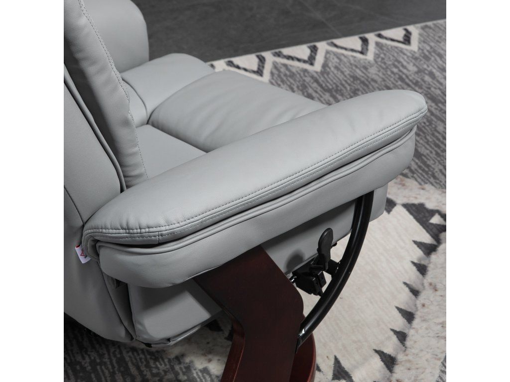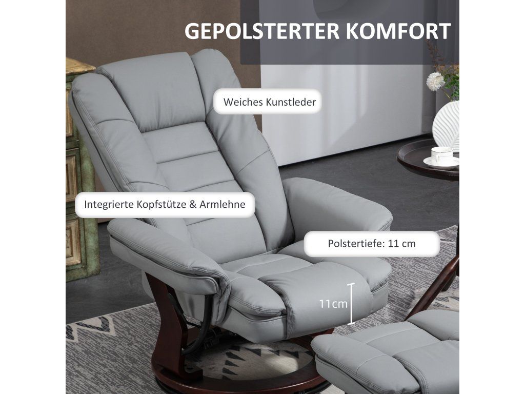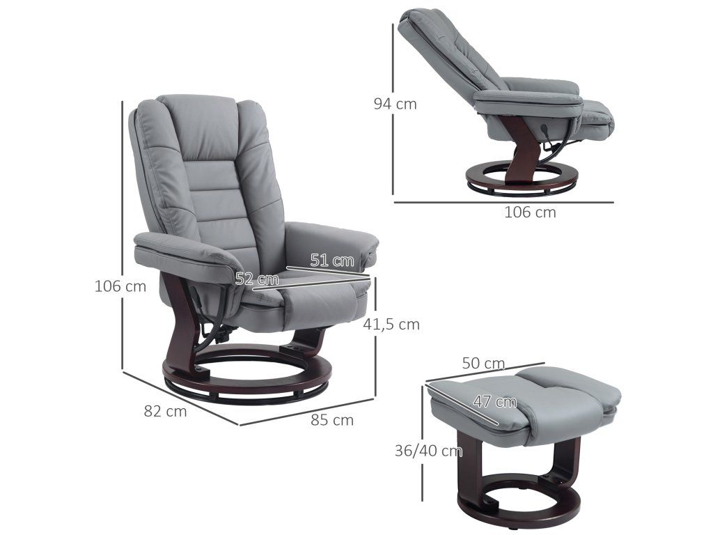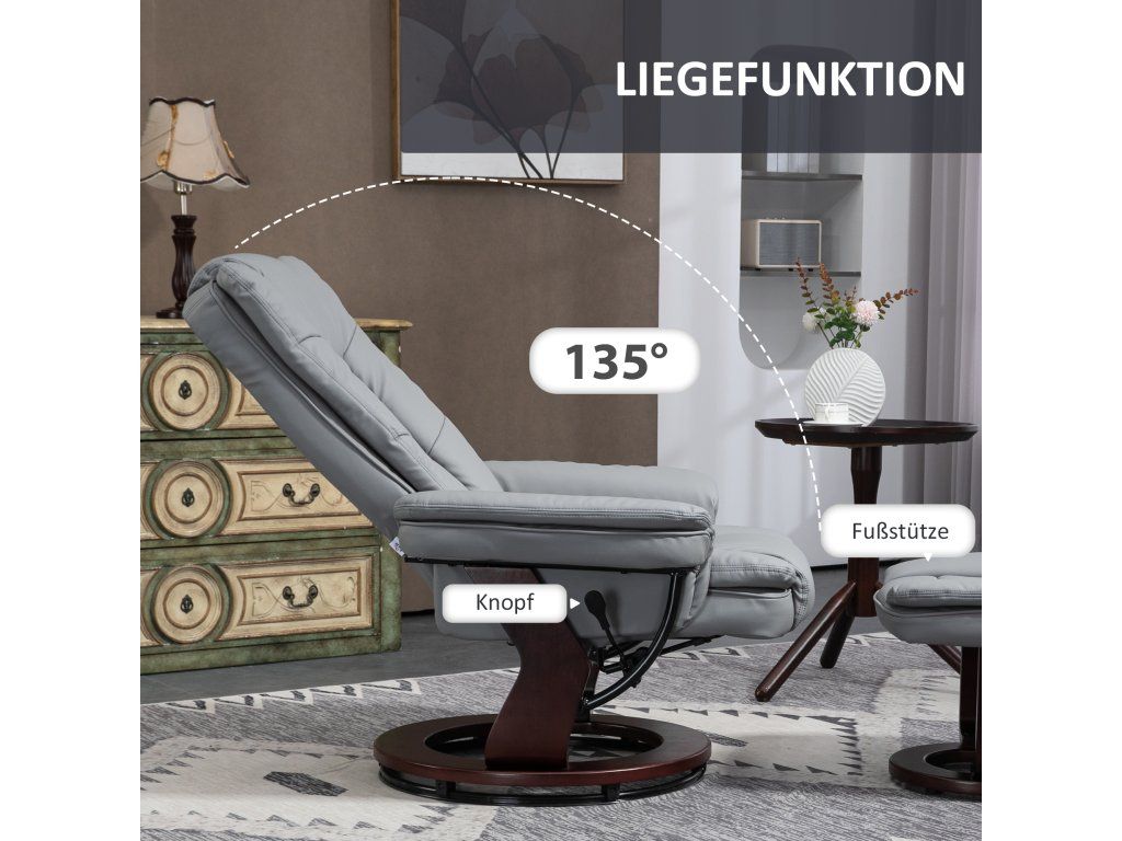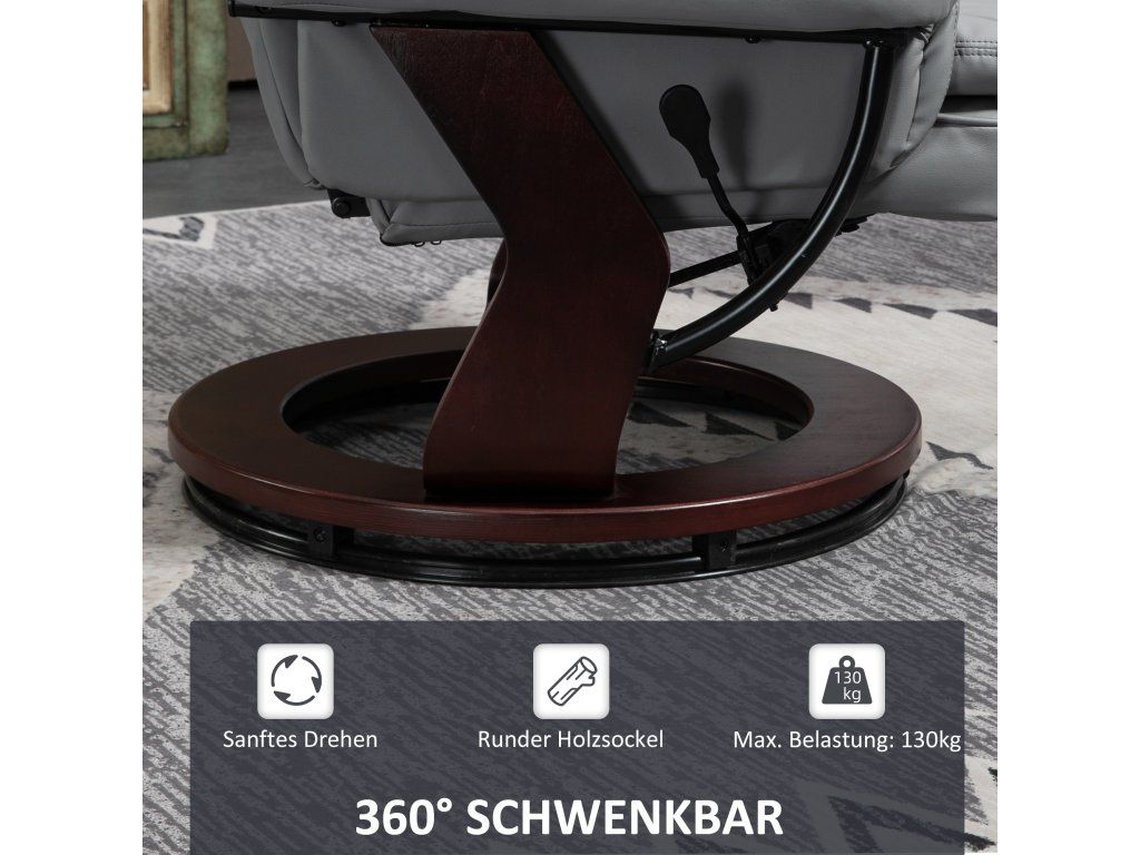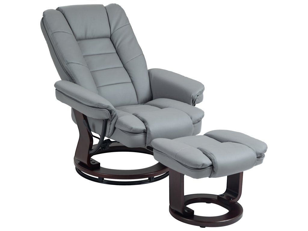 Polohovací křeslo HOMCOM s podnožkou, otočné, polohovací opěradlo, kožený vzhled, nosnost do 130 kg, šedé