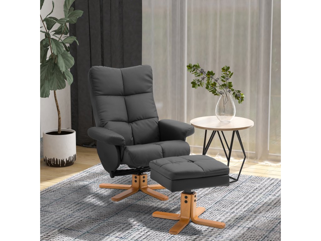 Polohovací křeslo HOMCOM s podnožkou, úložný prostor, polstrované TV křeslo s funkcí polohování, otočné o 360° do ložnice, obývacího pokoje, umělá kůže, černé