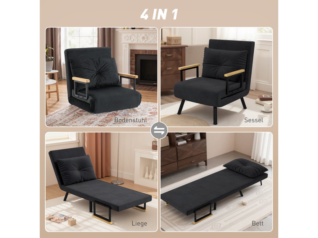 ✔ Všestranné použití: křeslo a postel pro hosty v jednom