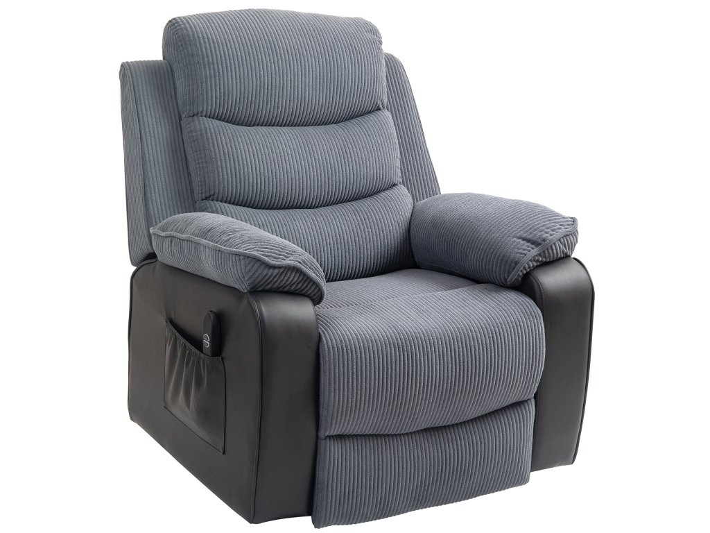 Polohovací křeslo s měkkým manšestrovým potahem, polohovací křeslo s dálkovým ovládáním a bočními kapsami, tmavě šedé