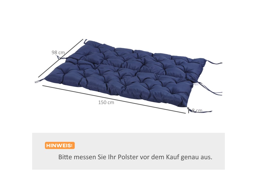 Polštář na lavici Outsunny, polštář na lavici s upevňovacími popruhy, až pro 3 osoby, pěnová výplň, polštář na sedadlo