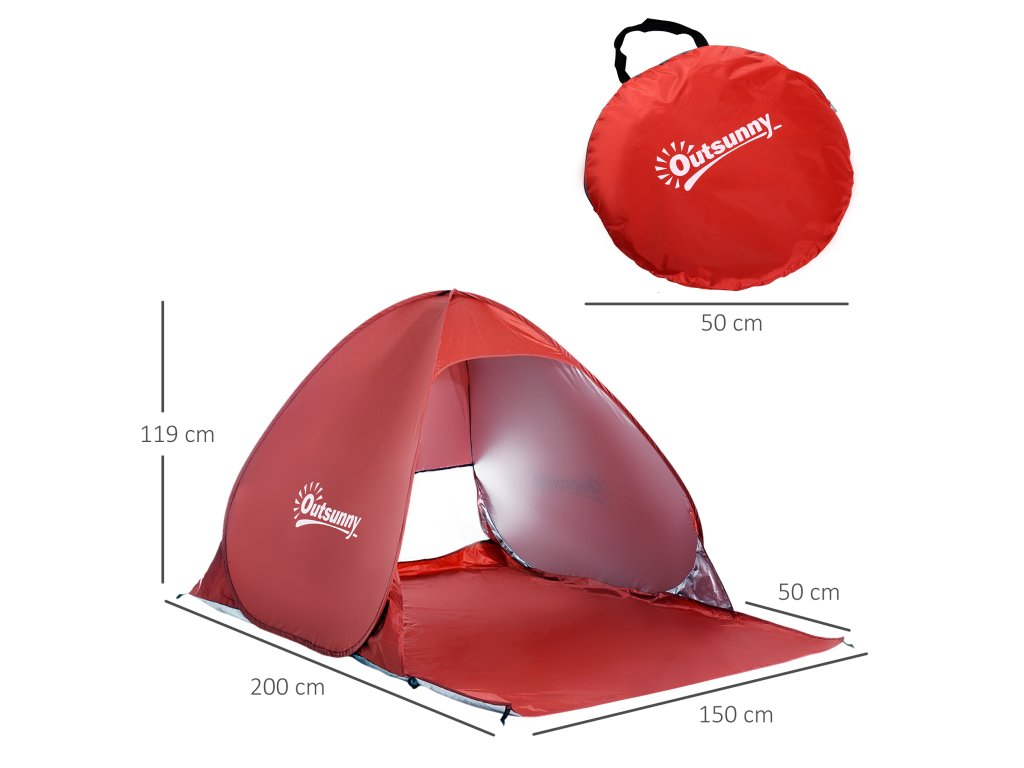Pop-up stan Outsunny, plážový stan, kempinkový stan, polyester, 200 x 150 x 119 cm, červený
