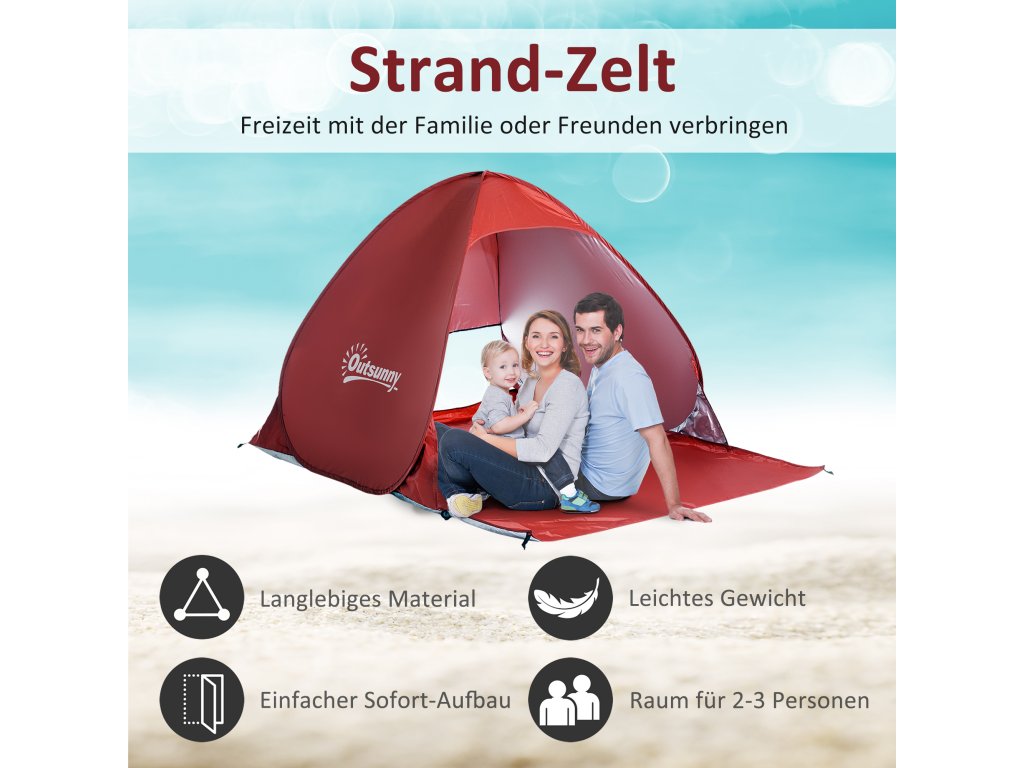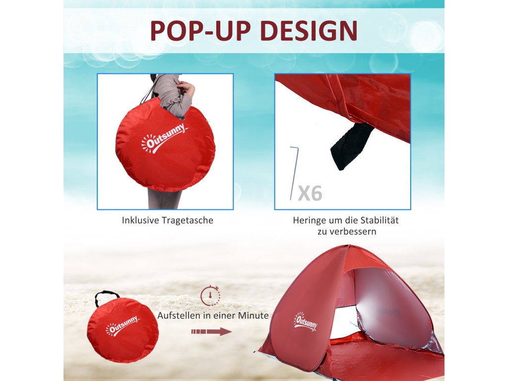 - Snadné sestavení - plážový stan lze sestavit automaticky během několika sekund po vyjmutí z přenosné tašky, což ušetří spoustu času a námahy.