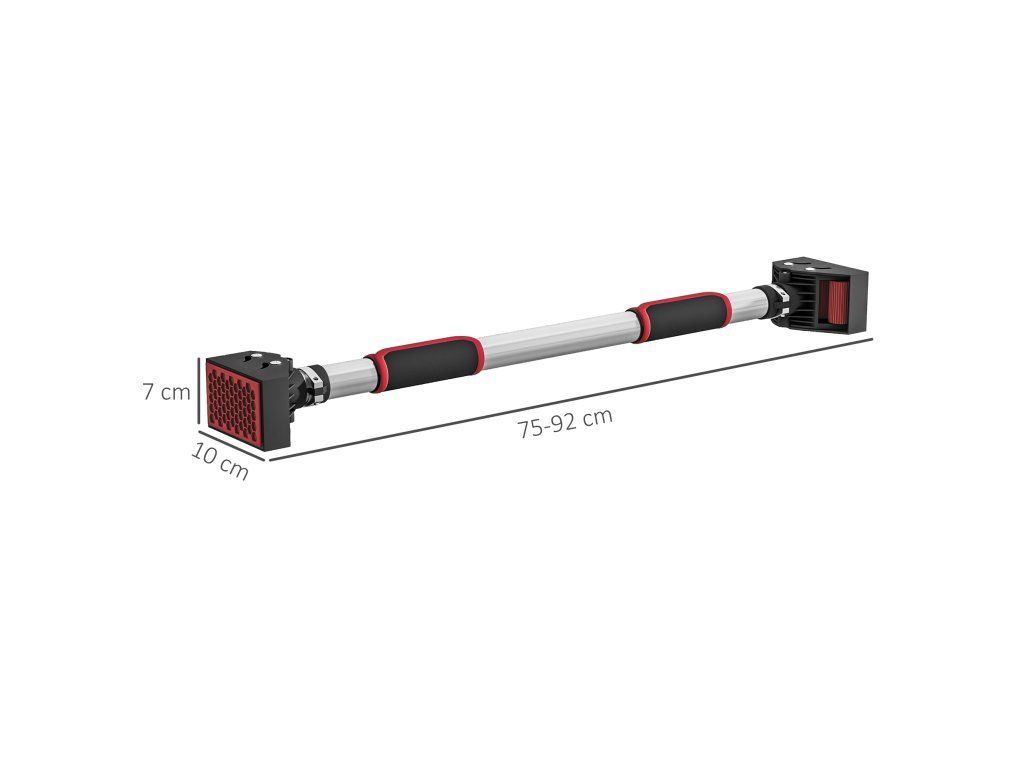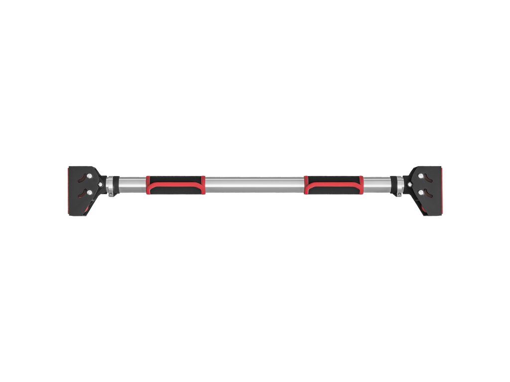 Posilovací tyč SPORTNOW pro dveřní zárubně, nastavitelná, bez vrtání, ocel, do 200 kg, 75-92 x 10 x 7 cm, černá/červená
