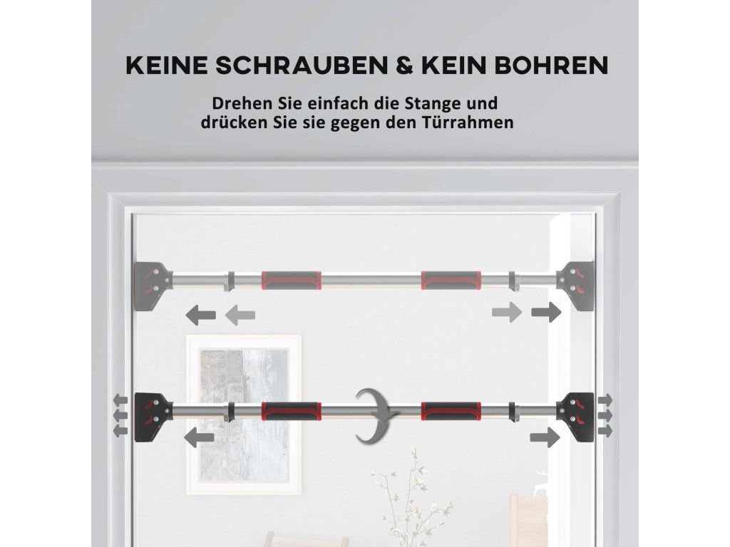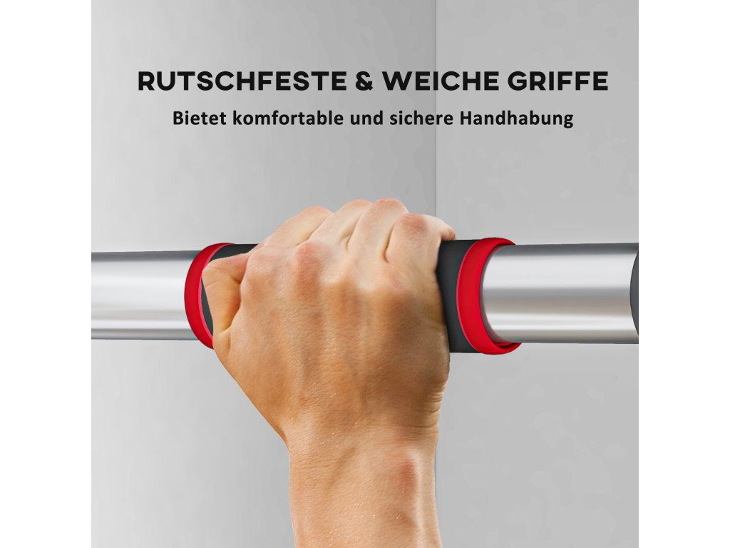 Proměňte svůj rám dveří v posilovnu s tyčí SPORTNOW na přitahování! Snadná instalace na svorky a přizpůsobitelná délka, ideální pro zárubně dveří široké 75 až 92 cm. Protiskluzové úchyty poskytují extra přilnavost a dělají z této tyče na přítahy ideální volbu pro efektivní a bezpečný trénink doma. Tyč na přítahy snadno unese až 200 kg a drží tím pevněji, čím výše ji zatížíte, což vás chrání před pádem.