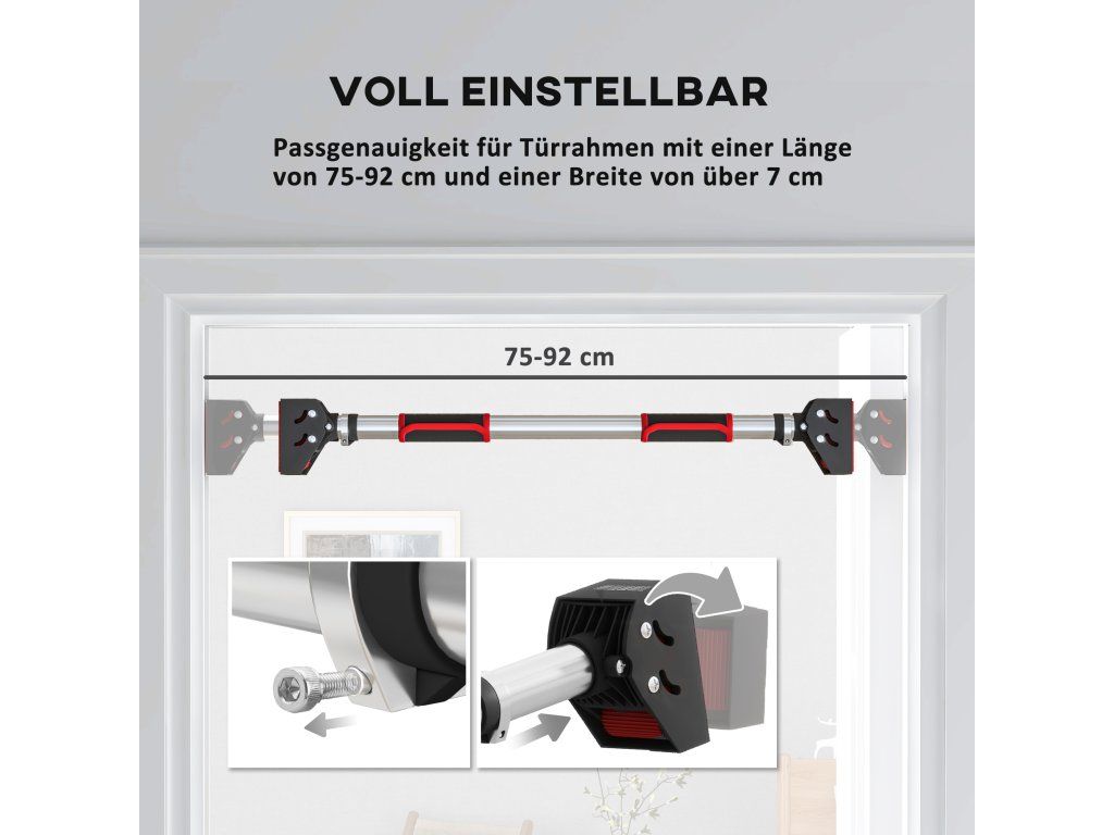 - Přizpůsobitelná délka: Šířku této vytahovací tyče (75 - 92 cm) přizpůsobte rámu dveří, je vhodná pro rámy dveří o šířce 76-90 cm a hloubce nad 7 cm