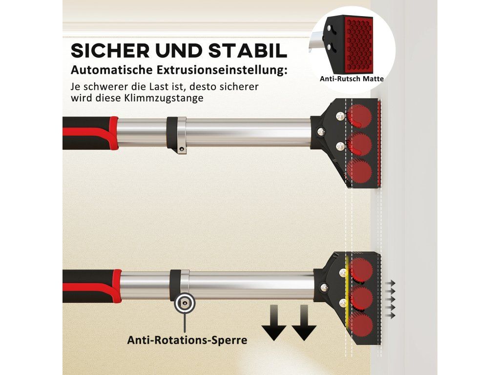 - Instalace bez námahy: Tuto vytahovací tyč lze instalovat rychle a bez vrtání - stačí tyč otočit a bezpečně ji upnout do rámu dveří