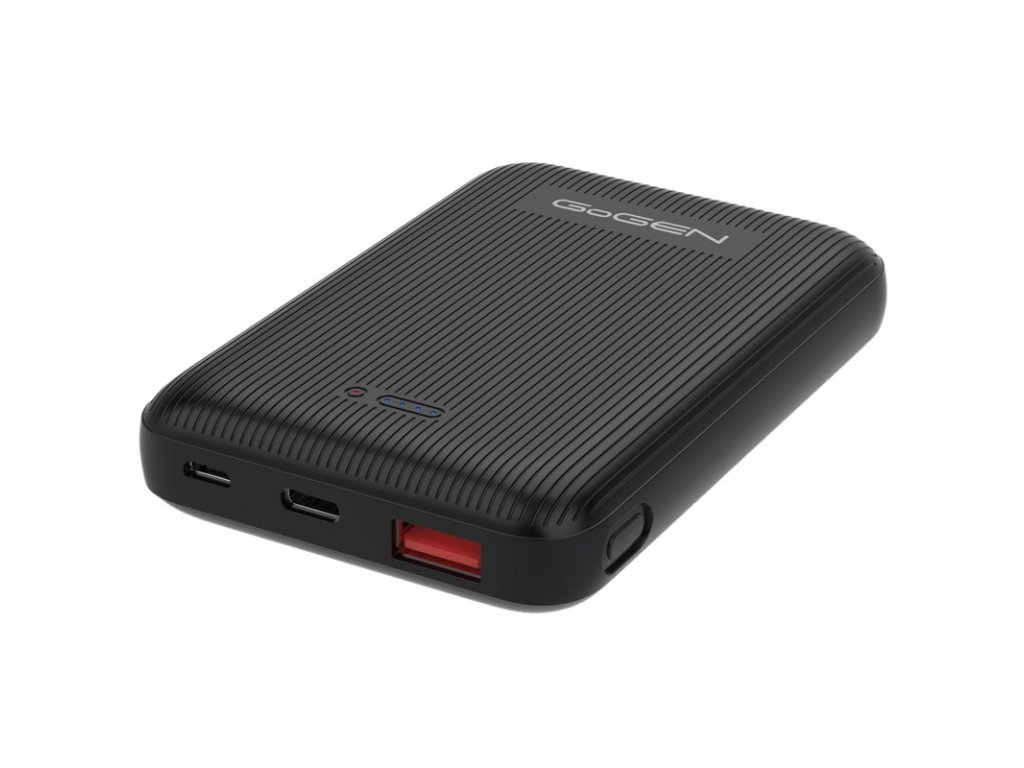 Power Bank GoGEN 10 000 mAh, Mag Safe Function, bezdrátové nabíjení 10W, vstupy micro USB/USB-C 5V/2A, výstupy USB-C/USB, černá barva
