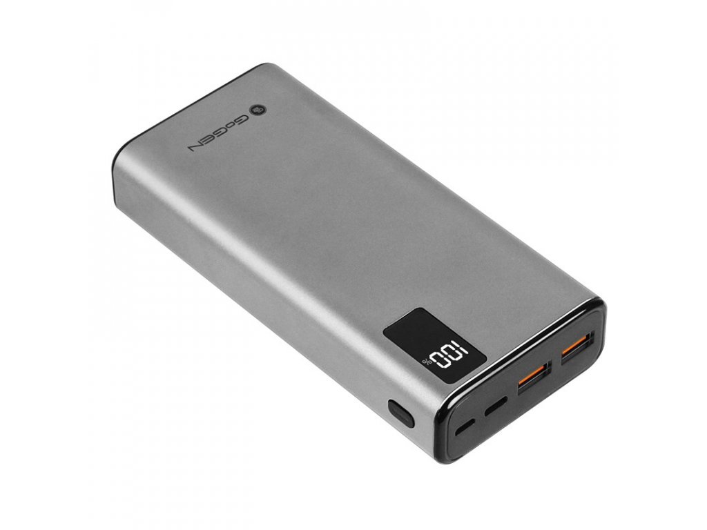 Power Bank GoGEN 20 000 mAh, vstupy micro USB / USB-C, výstupy USB-C / 2xUSB, Power Delivery, hliníkové provedení, LED displej, stříbrná barva