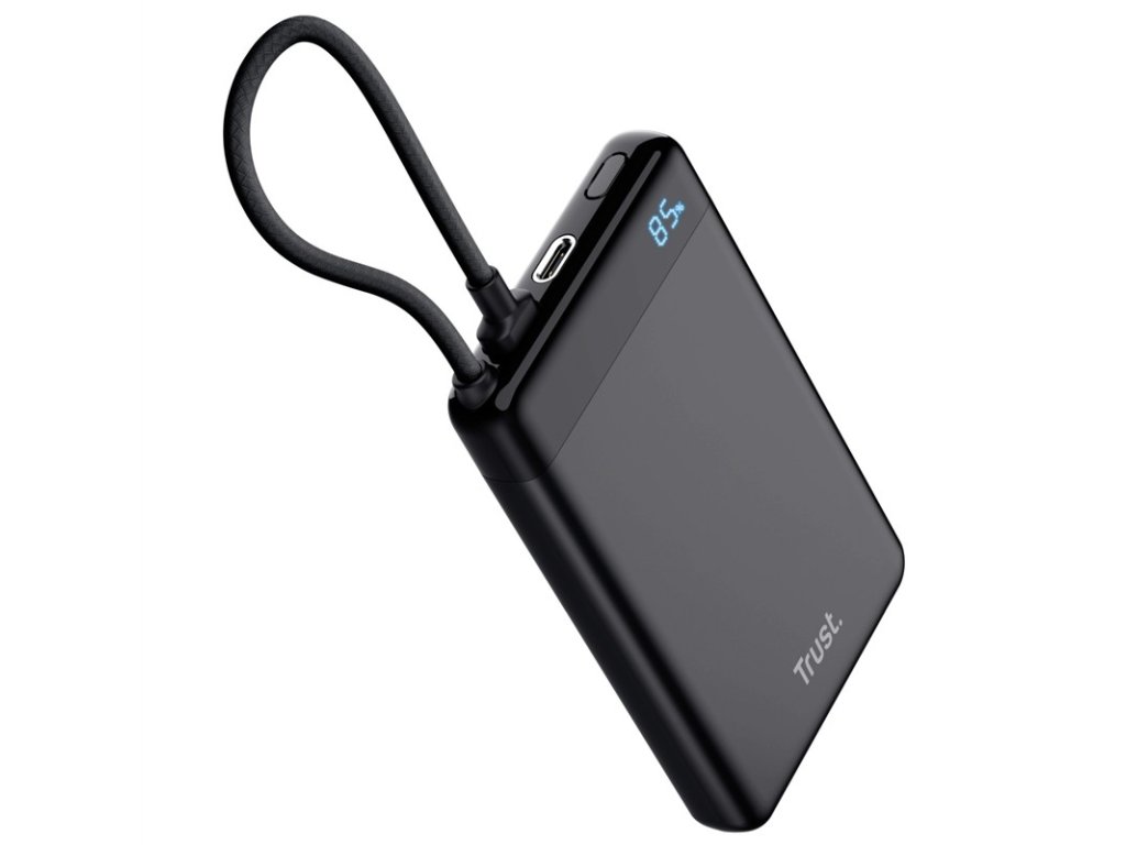 Powerbanka Trust Fiera, 10000 mAh, s kabelem, 2x USB-C - černá