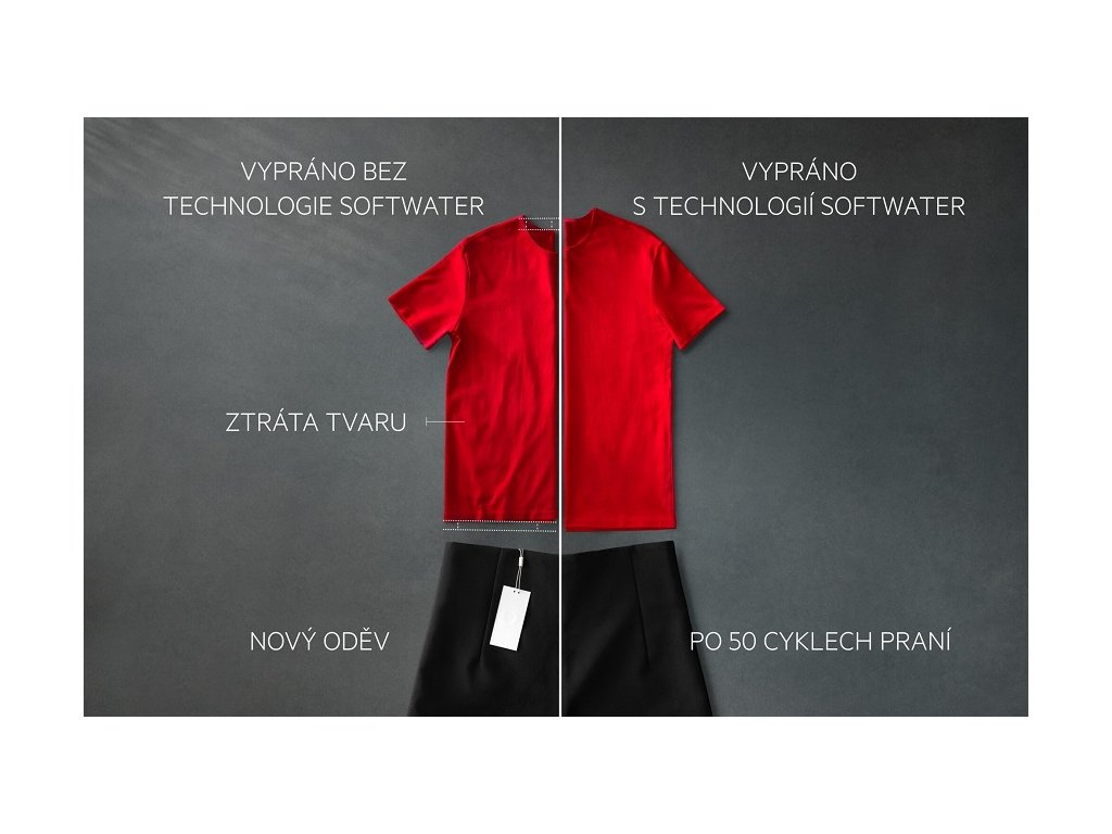 - Chrání oděvy a jejich barvy. Technologie SoftWater filtruje z vody minerální látky. Zamezuje tak blednutí barev i po prvních 50 praních* a zachovává tvar oblečení.** Oblečení díky tomu vydrží déle v zářivých barvách.