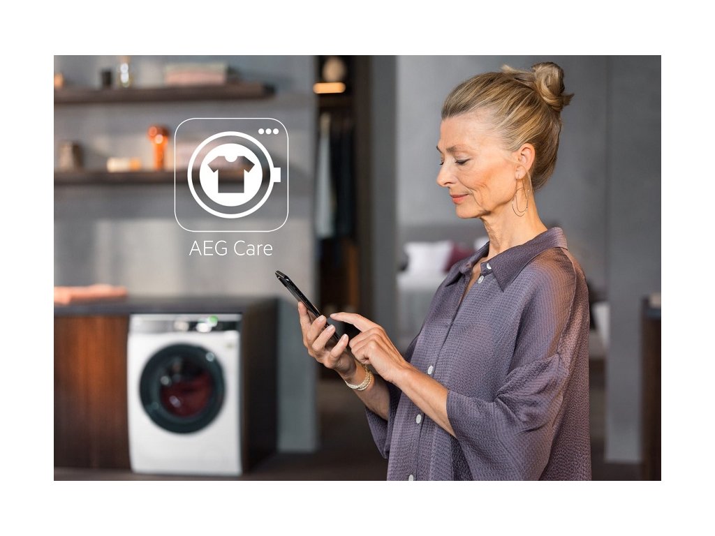 - Pomocí aplikace My AEG Care můžete přizpůsobit nastavení a získat chytré tipy a návrhy. Přizpůsobte si prací cykly a posílejte spotřebiči pokyny, aby se přizpůsobil vašim potřebám a zvyklostem. Chytrá a snadná péče prostřednictvím vašeho chytrého telefonu.