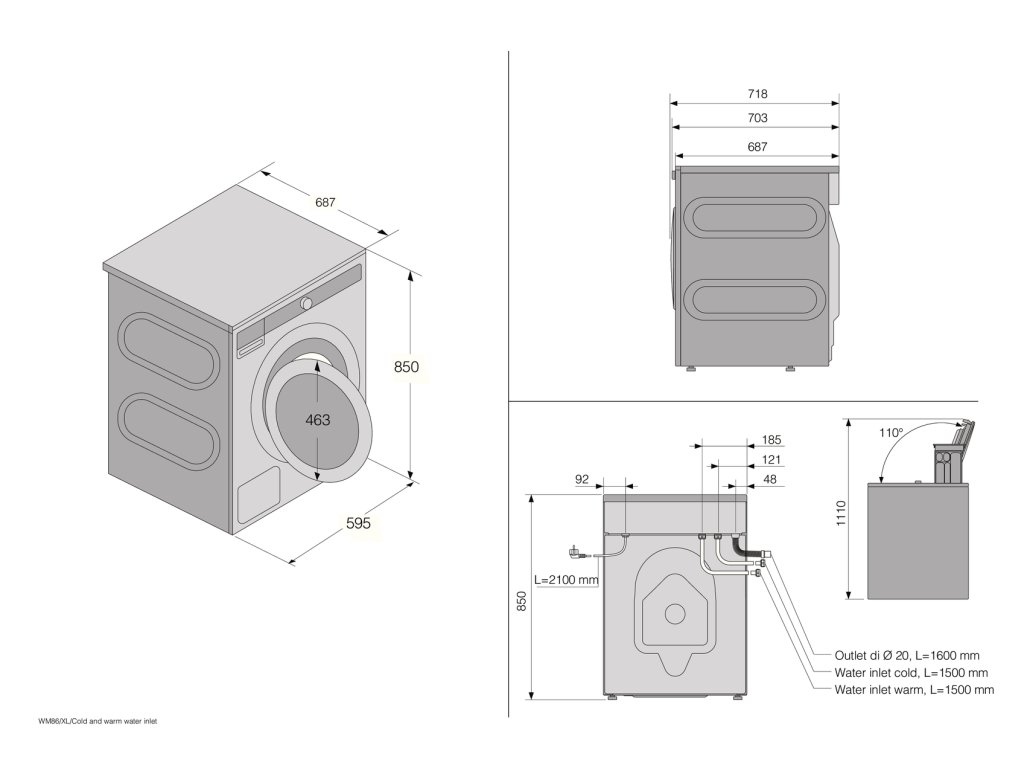 • Délka připojovacího kabelu: 2100 mm