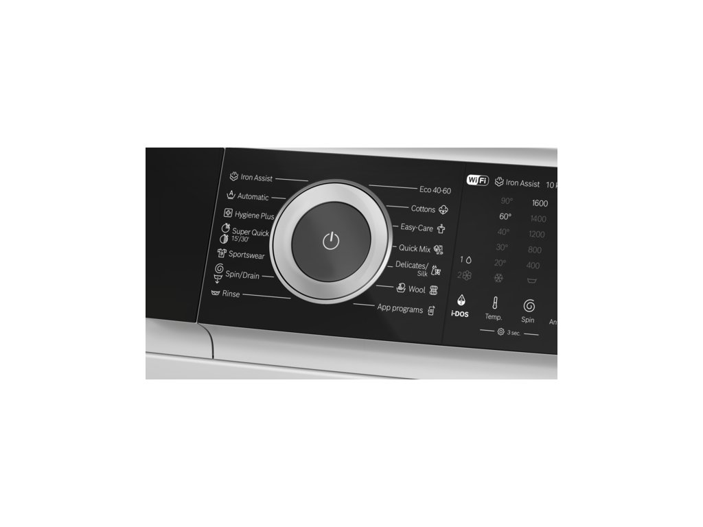 - speciální programy: další programy přes aplikaci, automatický program pro jemné prádlo, Iron Assist, Hygiena Plus, odstřeďování/odčerpání, rychlý/mix, sport/fitness, máchání, super rychlý 15'/30'