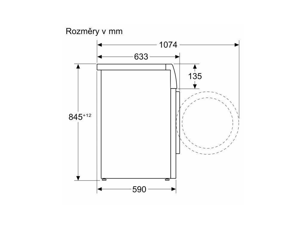 - hloubka spotřebiče s otevřenými dvířky: 1074 mm