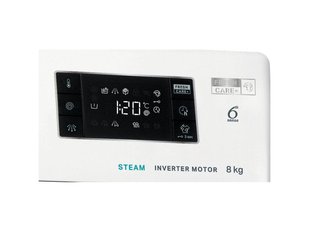 - Přídavné funkce: Clean+, Intenzívní máchání, Odložený start, FreshCare+, Nastavení teploty, Nastavení odstřeďování, Režim Demo. Volitelná funkce FreshCare+ načechrává prádlo po skončení praní až 6 hodin.