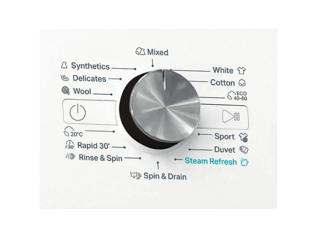 - Programy: Mix, Bílé prádlo, Bavlna, Eco 40-60, Sport, Prošívané přikrývky, Osvěžení párou, Odstřeďování & Vypouštení vody, Máchání & Odstřeďování, Rychlé 30', 20°C, Vlna, Jemné prádlo, Syntetika,