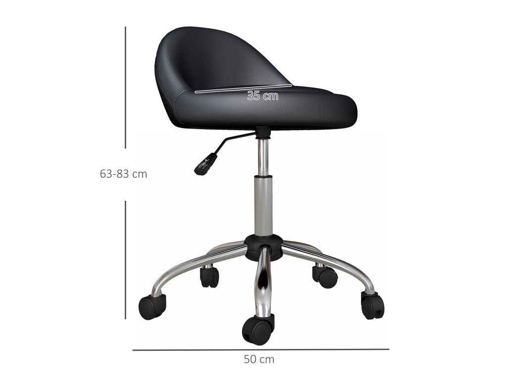 Tato židle od HOMCOM vám zajistí ideální výšku pro optimální pracovní podmínky. Pevné opěradlo a polstrovaný sedák poskytují dlouhotrvající pohodlí. Čalounění z umělé kůže je luxusní a snadno se čistí. Nastavitelná výška sedáku je praktickým prvkem, který vyhovuje různým potřebám. Pět koleček a otočný sedák usnadňují pohyb po pracovním prostoru. Tato elegantní židle je skvělým doplňkem do kosmetických salonů a mnoha dalších prostor!
