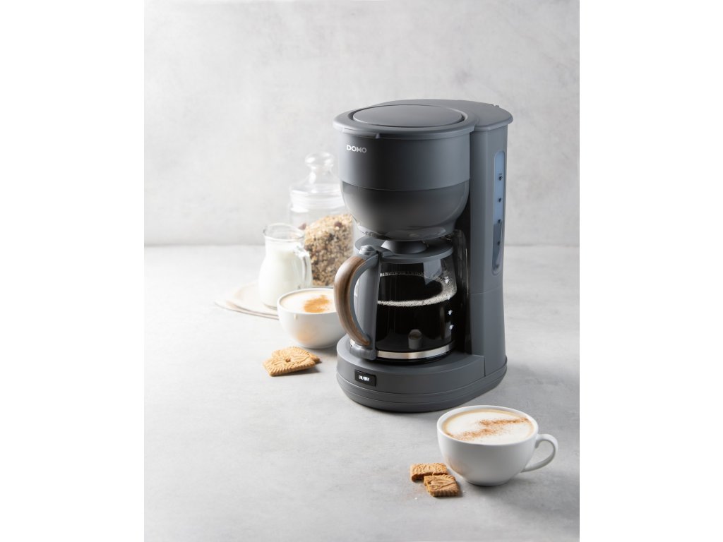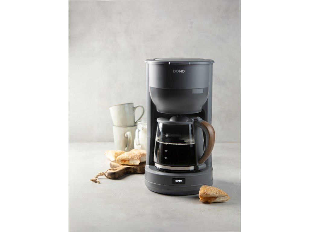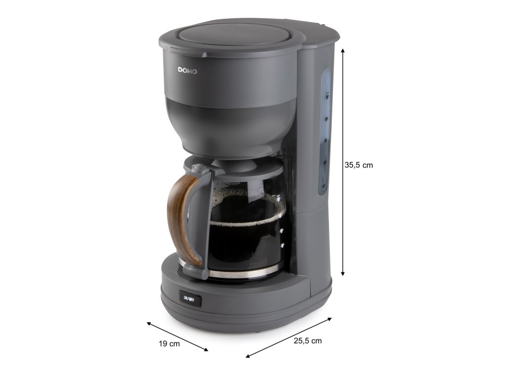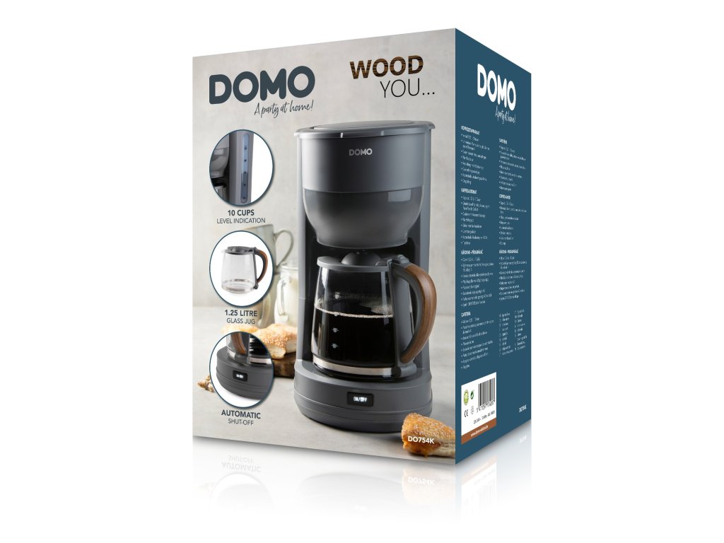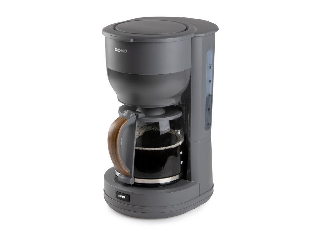 Překapávač na kávu WOOD YOU - šedý - DOMO DO754K, Objem: 1,25 l, Kapacita: 10 šálků, Příkon: 1 000 W, automatické vypnutí