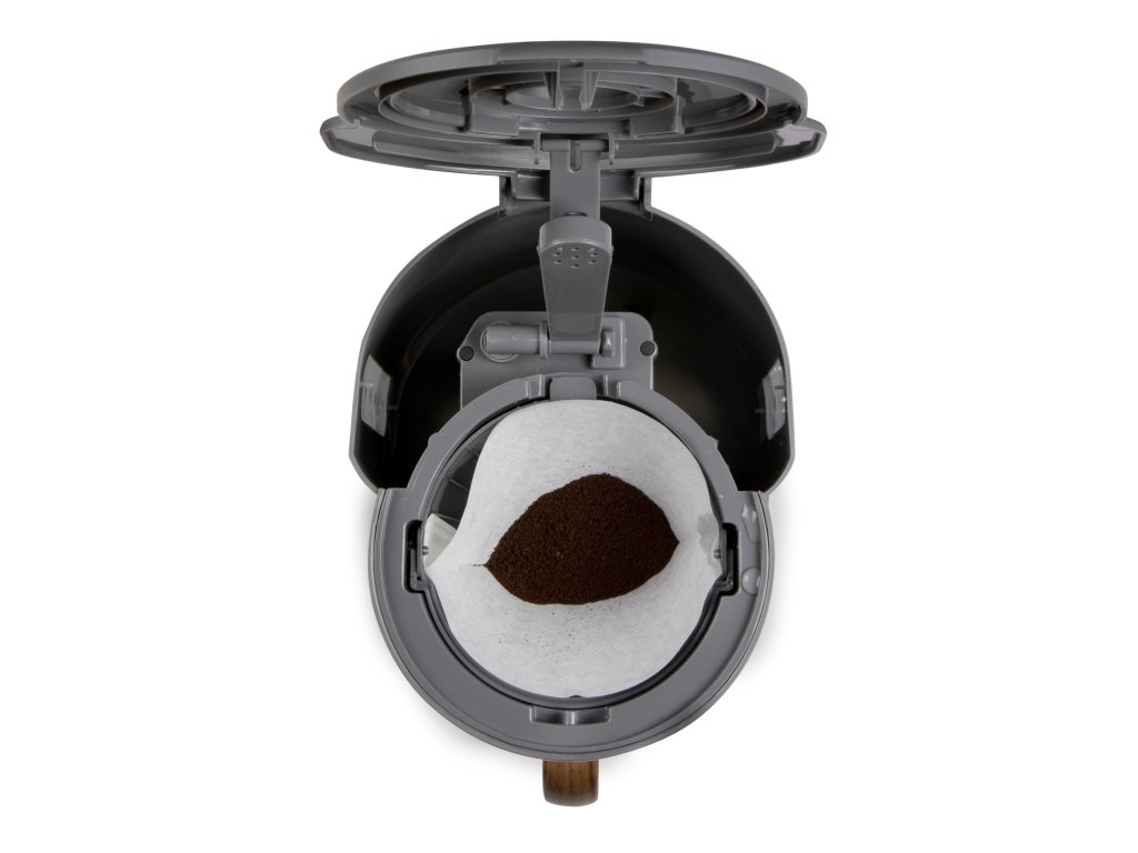 S kapacitou 1,25 litru v něm uvaříte až 10 šálků kávy nebo čaje najednou. Odnímatelný držák filtru je vhodný pro papírové filtry velikosti 4.