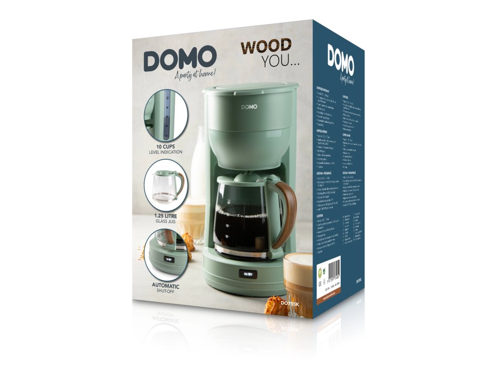 Překapávač na kávu WOOD YOU - zelený - DOMO DO755K, 1,25 litru, 1000W