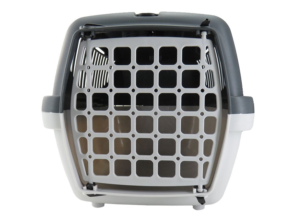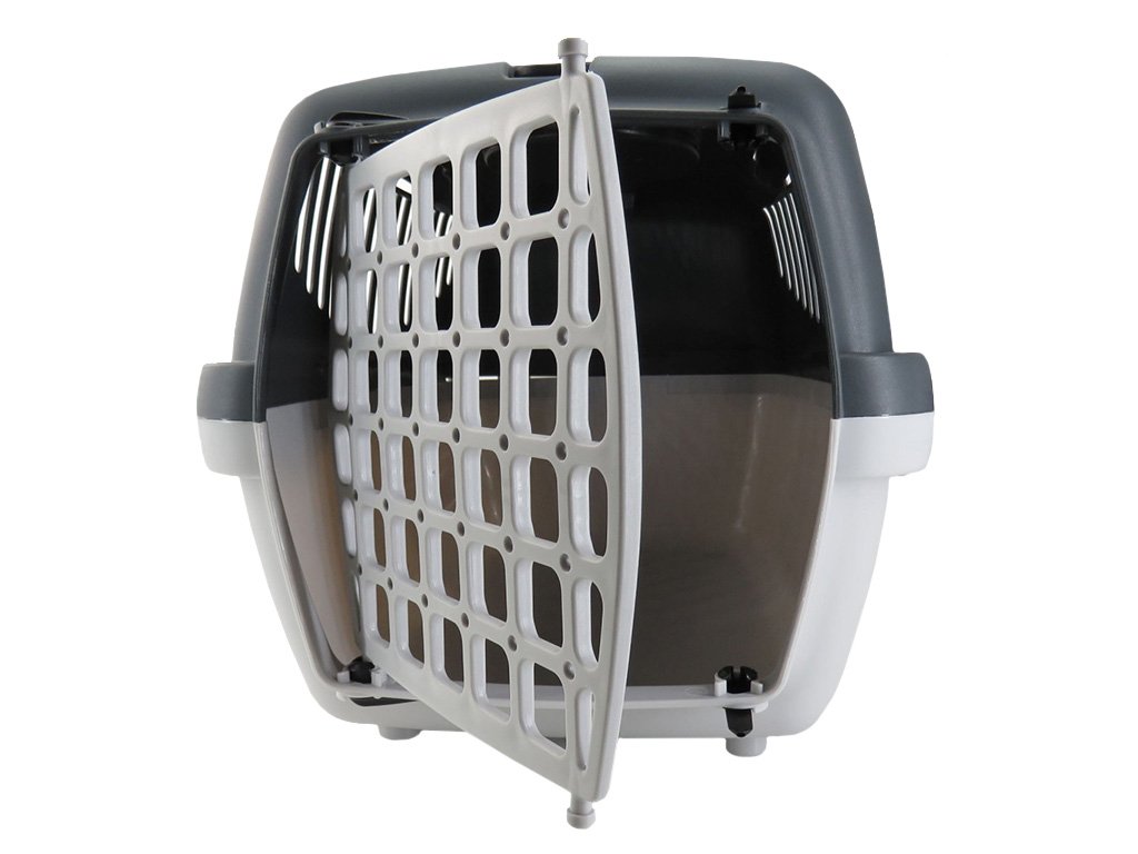 Pro psy a kočky do 10 - 12kg, víko a vana se spojují klipsy, přední dvířka se 4 zámky, nastavitelné pravé nebo levé otevírání dvířek, rukojeť pro snadné přenášení přepravky, úložný box na vrchu přepravky, uzavíratelný manipulační otvor na vrchu přepravky, dva úchyty pro bezpečnostní pás v autě, vnitřní rozměry 58,5x36,5x33,5cm, vnější rozměry 61x40x38cm.