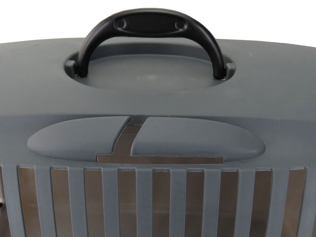Na vrchní straně boxu se nacházejí dvě uzavíratelné přihrádky. Jedna přihrádka může sloužit na uskladnění granulí a pamlsků. Druhá přihrádka obsahuje manipulační otvor, kterým můžete psa hladit aniž byste otevřeli dvířka a riskovali útěk zvířete. Pro snadné přenášení se na vrchu přepravky nachází také praktická rukojeť a dvě poutka pro připnutí popruhů (nejsou součásti balení). Mřížka na dvířkách a praktická okénka s průzory po stranách boxu zabezpečují správnou cirkulaci vzduchu.