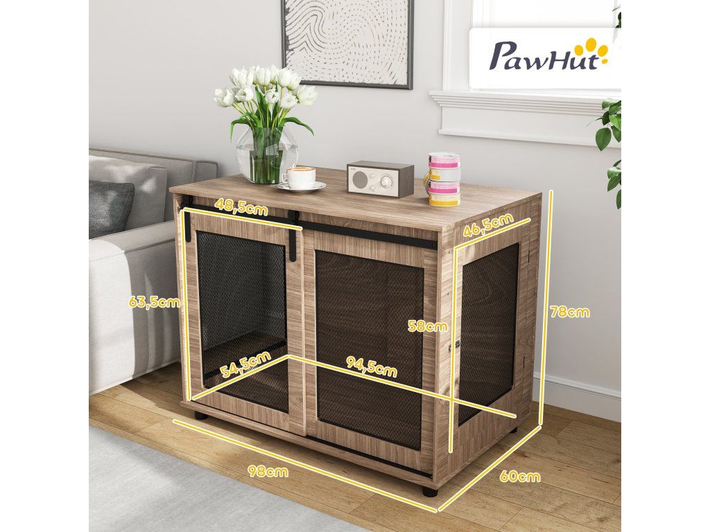 Přepravka pro psy PawHut, přepravní box pro psy, úkrytový box pro domácí zvířata, uzamykatelné dveře, 98 x 60 x 78 cm, světle hnědá barva