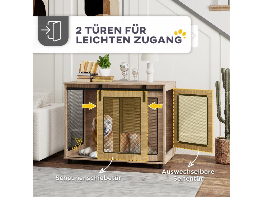 - Stylová a funkční: Díky posuvným dvířkům ve stylu stodoly nabízí tato přepravka pro psy pohodlný přístup, dodává jí šarm a šetří cenné místo. Ventilace na třech stranách zajišťuje celodenní pohodlí vašeho mazlíčka