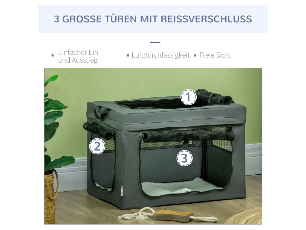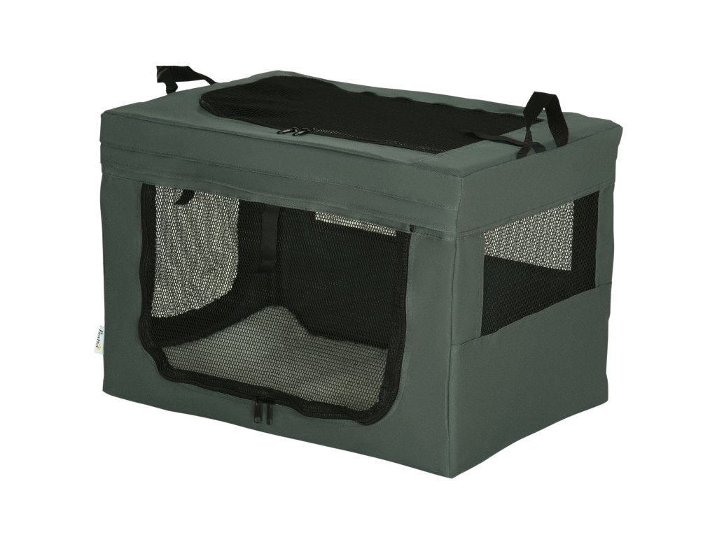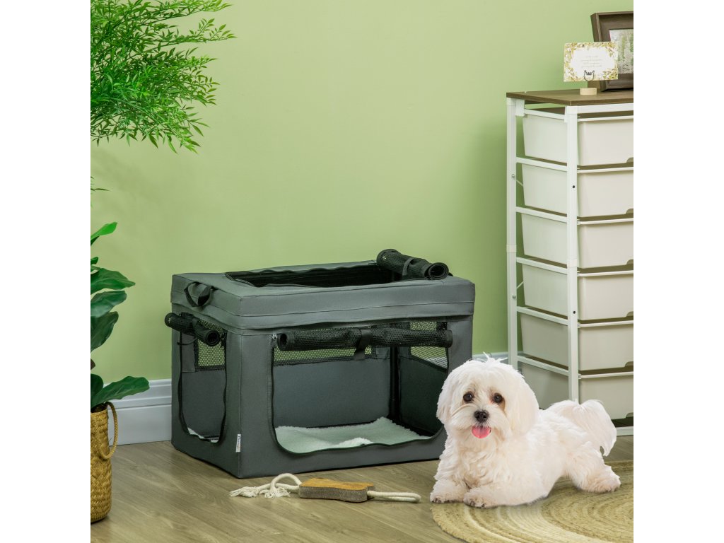 Přepravní box PawHut, skládací, 3 vchody, vnitřní polštář, pro psy a kočky do 4 kg/40 cm, šedý
