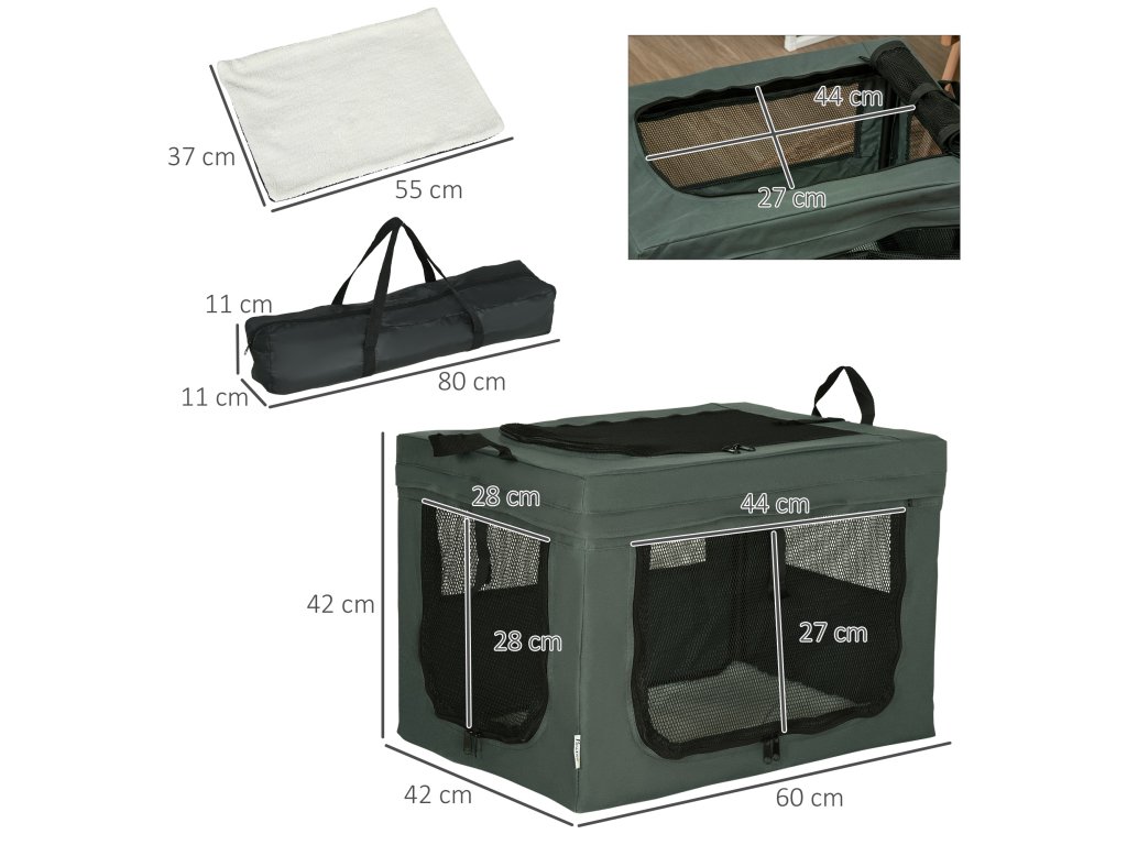 S touto cestovní přepravkou PawHut je cestování k veterináři hračka! Látková přepravka má v horní části dvě madla a troje dvířka pro snadný přístup - domácí mazlíčci vstupují do prostorného prostoru a mohou odpočívat na měkkém polštáři, zatímco okénkem ze síťoviny proudí čerstvý vzduch. Odnímatelný kovový rám a přiložená taška zajišťují prostorově úsporné skladování. Látkový box lze použít také jako pohodlný pelíšek pro domácí mazlíčky.