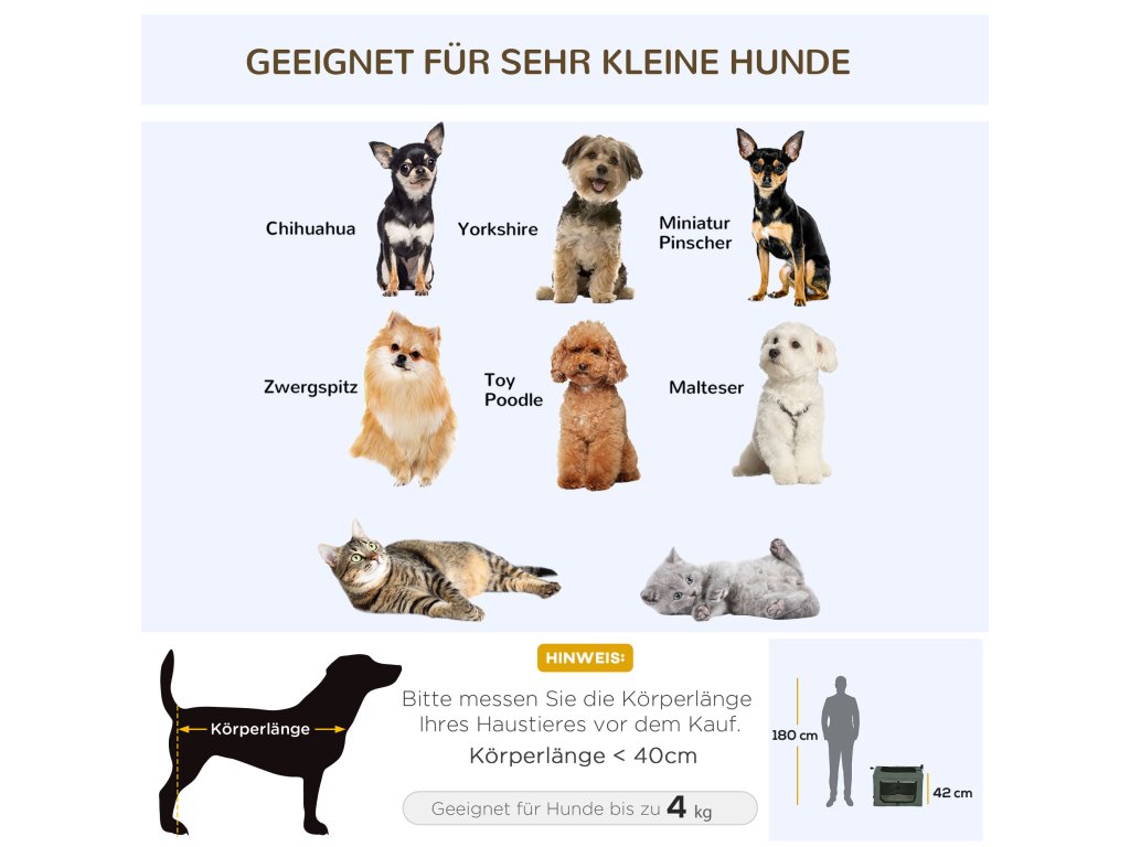- ✔ Vhodný pro kočky a miniaturní psy s délkou těla do 40 cm a hmotností do 4 kg
