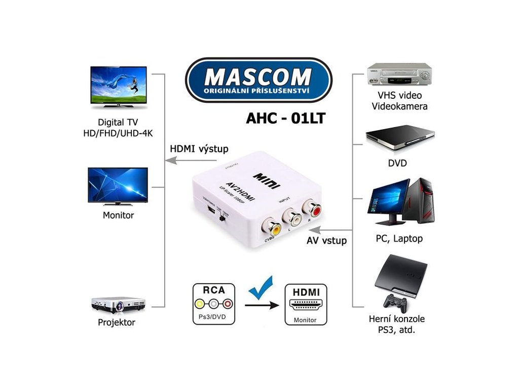 Převodník MASCOM AHC 01-LT, konvertor 3AV na HDMI
