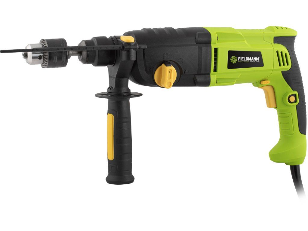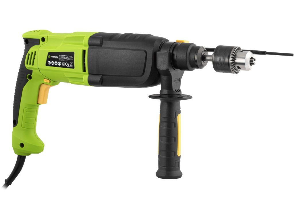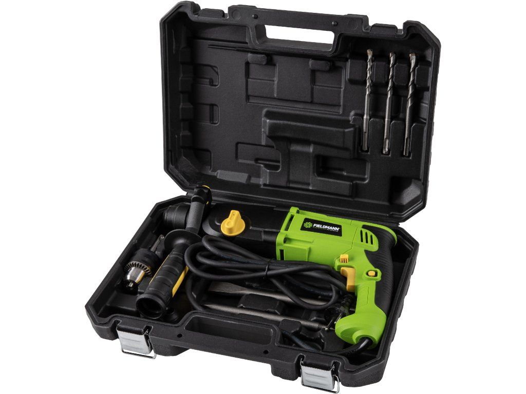 Příklepová vrtačka je nepostradatelným pomocníkem každého seriózního kutila. Tam, kde nestačí obyčejná vrtačka, přichází na řadu příklep. FIELDMANN FDV 211050-E je vyzbrojena 1 050 W příkonem, s jehož pomocí je schopna vyvrtat díru hloubky 26 mm do betonu, 13 mm do kovu a až 42 mm do dřeva. V porovnání ceny a výkonu nenajdeme mnoho lepších produktů na trhu. Praktické rychloupínací sklíčidlo SDS PLUS zaručuje jednoduchou výměnu mezi 3 vrtáky a 2 majzlíky, čímž usnadňuje práci a šetří čas. V horní části vrtačky najdete otočný ovladač, s jehož pomocí si nastavíte nářadí tak aby vyhovovalo právě prováděné práci. Intuitivní používání vrtačky dělá z tohoto nářadí šikovného pomocníka do každé dílny nebo domácnosti, a napájecí kabel dostatečné délky vám umožní práci na jakémkoliv projektu, který si vymyslíte.Klíčové vlastnosti: