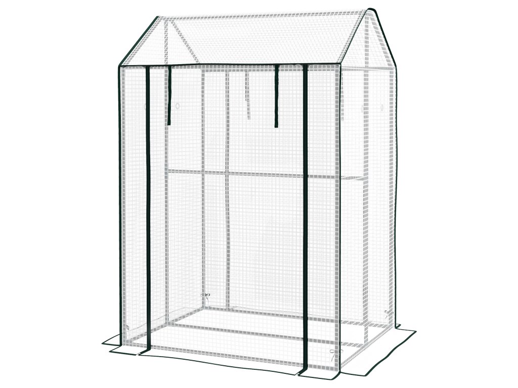 Prosluněný fóliovník s dvoukřídlými dveřmi, větruodolný rajský domek v bílé barvě, 100x80x150cm, ideální na zahradu a balkón