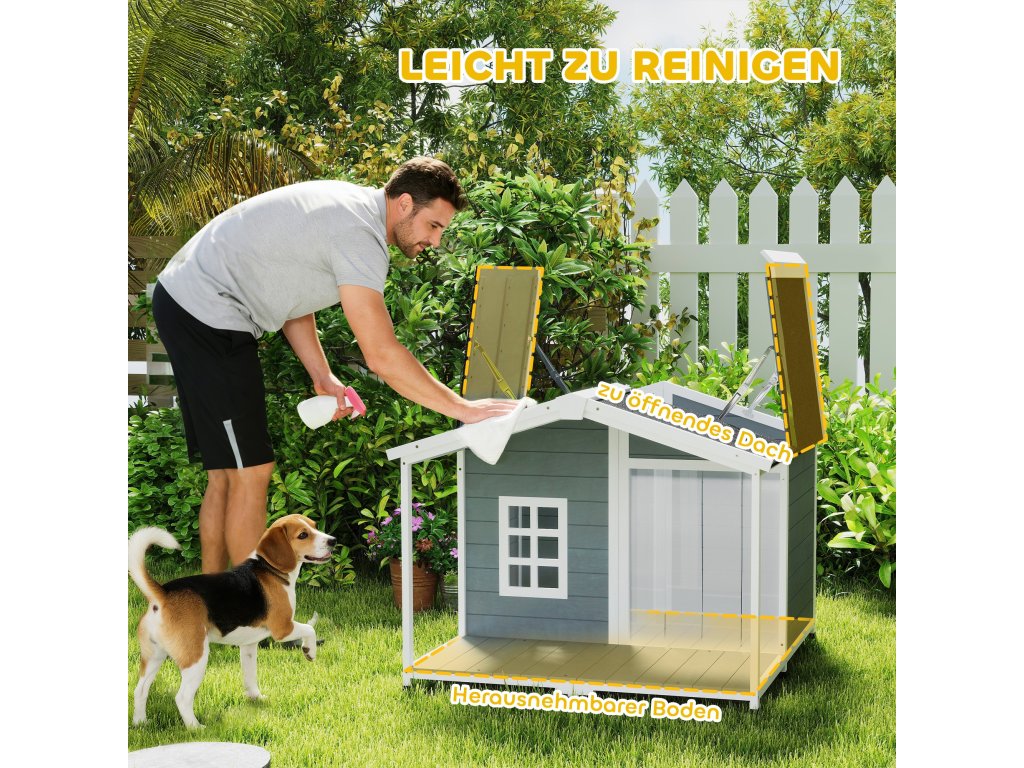 Snadné čištění: Sklopná střecha a výsuvná podlaha usnadňují čištění venkovní psí boudy. Hygienická, čistá a optimálně větraná – není nutné se ohýbat ani nepříjemně mačkat, s minimální námahou.