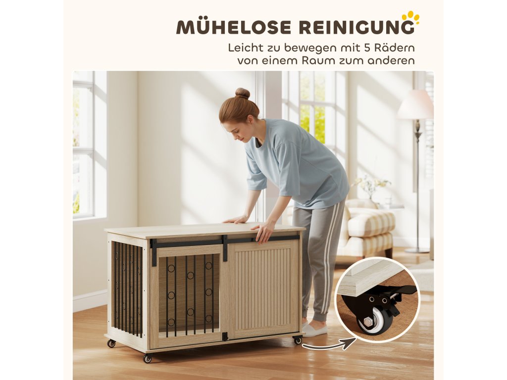 Snadná mobilita: Díky pěti hladce se pohybujícím kolečkům lze tuto psí klec bez námahy přemisťovat, což je ideální pro úklid nebo přeskupování nábytku. Péče o vašeho mazlíčka se tak stane obzvláště snadnou a bezstresovou.