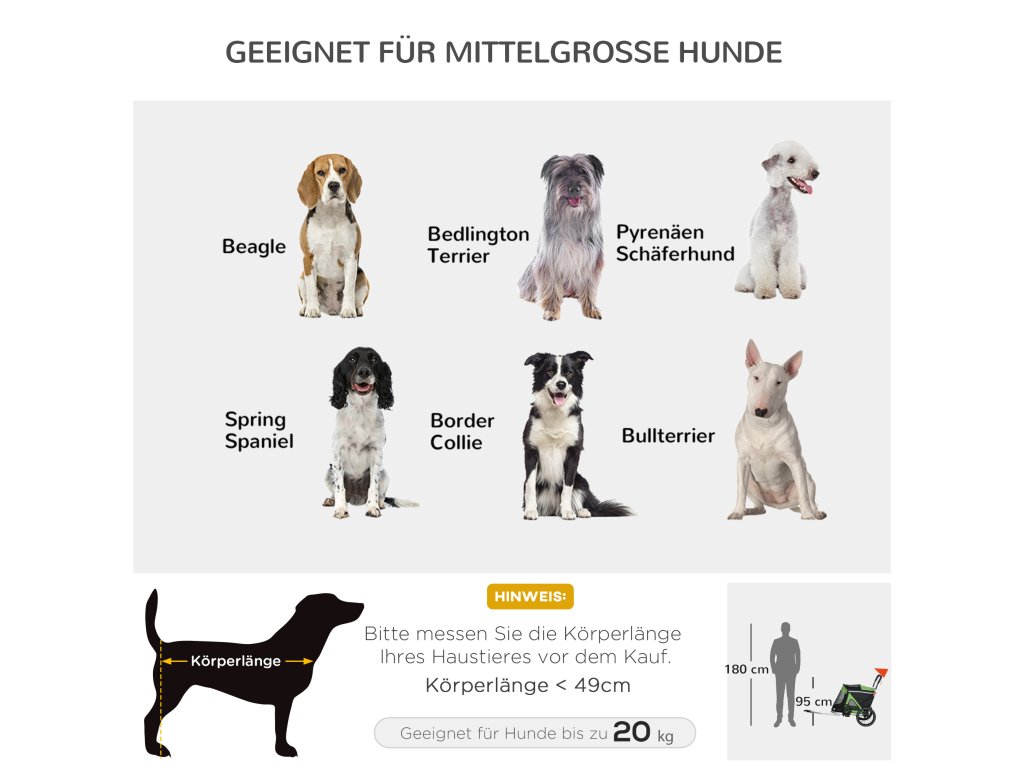 ✔ Vhodné pro středně velké psy do 20 kg a délky těla menší než 49 cm