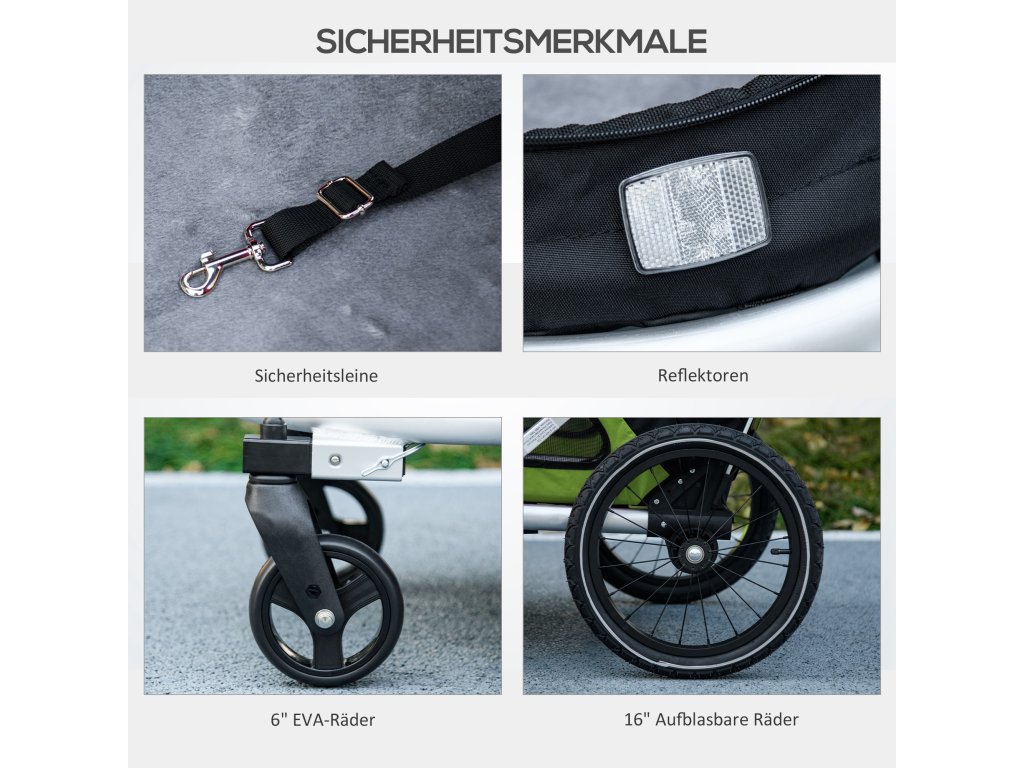 ✔ Design 2 v 1, lze použít jako přívěs a kočárek pro psy na procházky