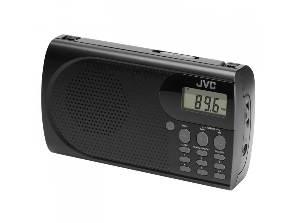 Radiopřijímač JVC RA-E431B představuje kombinaci jednoduchého a zároveň praktického přístroje. Oceníte jej v kanceláři, domácnosti, dílně, ale i v přírodě. Napájet jej lze z elektrické sítě nebo bateriemi. Konkrétně čtyřmi monočlánky typu C. Ladit svou oblíbenou stanici lze prostřednictvím digitálního FM tuneru. Navolenou frekvenci zobrazuje přehledný LCD displej. Uložit lze až 10 oblíbených rozhlasových stanic.